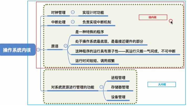 操作系统的内核分为微内核和宏内核。微内核——把内核各个服务程序模块中的部分内容移到内核的外面作为一个进程来看待,在内核中只保留内核服务与用户进程的接口,或者说只保留一个“壳”(或者说是消息的转送站),使内核大大变小。