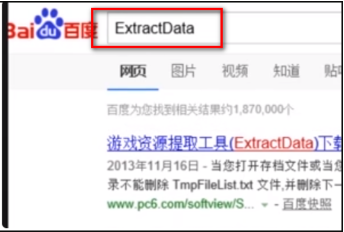 1、首先,在百度中搜索ExtractData的游戏提取工具,并下载该压缩包。