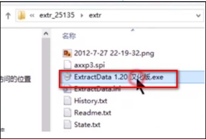 2、然后,在电脑中解压并打开下载好的压缩包,找到ExtractData......exe,并双击打开它。