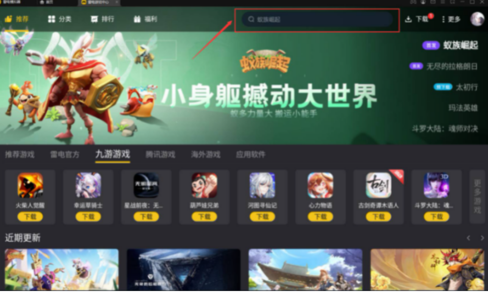 1、下载安装雷电模拟器然后打开,在模拟器桌面打开雷电游戏中心,在游戏中心的右上角有个搜索框。