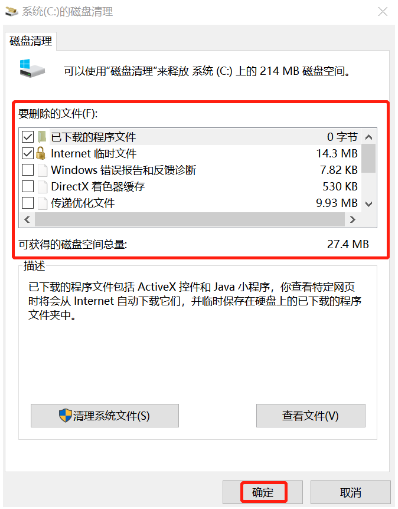 3、这里即可选择需要删除的文件进行【确定】,耐心等待清理c盘完成即可。