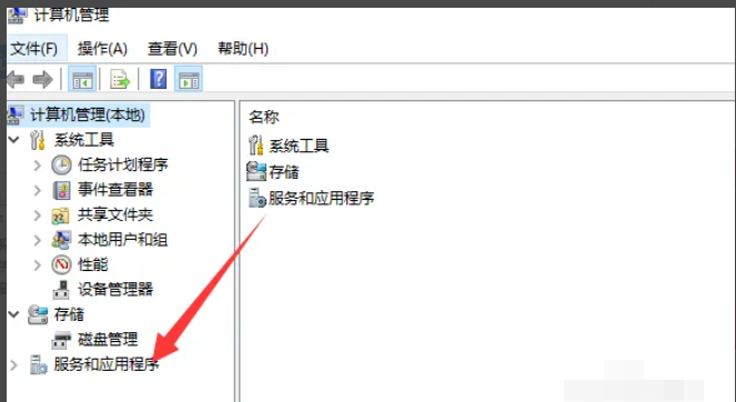 1、windows系统电脑中打开计算机管理之后,点击左侧“服务和应用程序”选项。