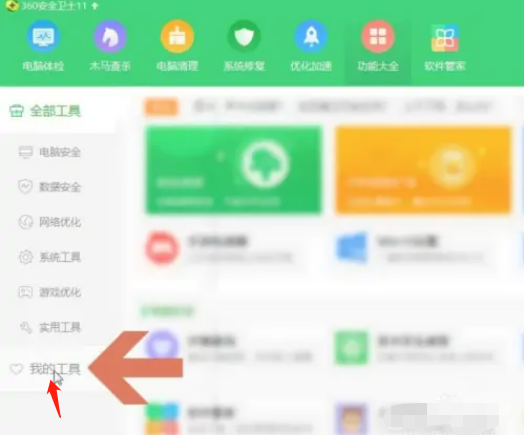 点击功能大全界面左侧列表中的【我的工具】。