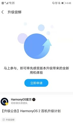 2、点击进入鸿蒙系统公测。