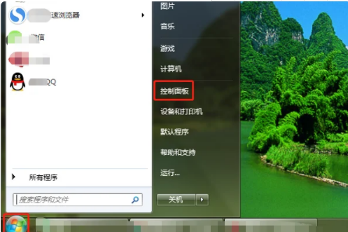 1、点击开始图标,点击之后会跳出来一个新的窗口,我们在这个窗口上可以看到一个控制面板的选项。