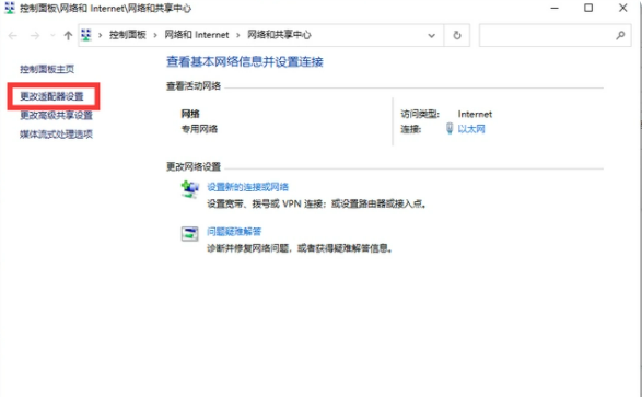 4、切换到新的界面,在这个界面的左侧菜单栏里可以看到一个“更改适配器设置”的选项,点击进入。