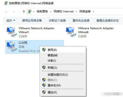 3、选择“本地连接”,选择“禁用”,再选择“启用”即可解决台式电脑重装系统后无法连接网络的问题。