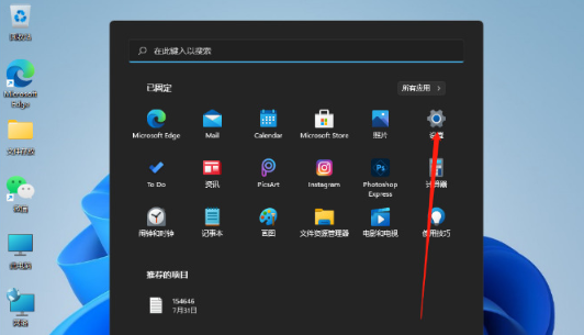 1.首先点击桌面下方的开始菜单,打开设置。