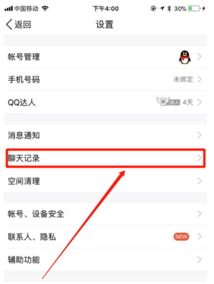 2.在设置的界面选项中,点击聊天记录进入下一步的操作。