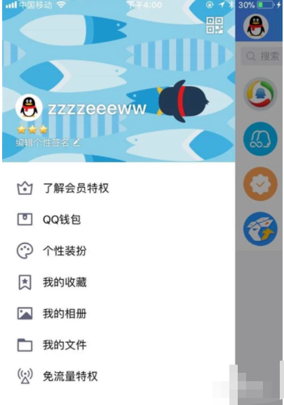 1.打开手机QQ,打开设置;