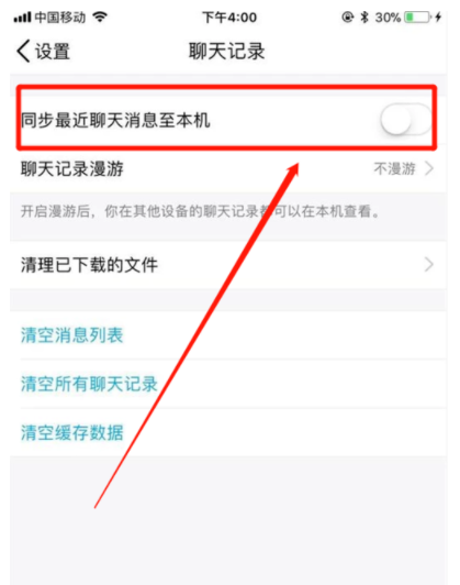 2.开启同步最近聊天信息至本机开关即可。