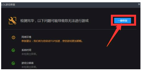 3.进入到【LOL游戏修复】窗口,点击右上方的【一键修复】按钮。