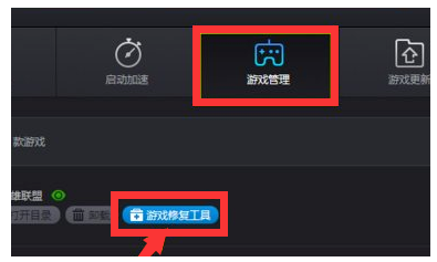 2.点击【游戏管理】,就会看到【英雄联盟】游戏右侧有一个【游戏修复工具】按钮,点击即可。
