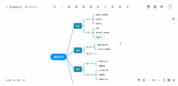 步骤2、进入思维导图编辑界面,可以根据模板内容双击主题修改自己需要的部分,如将“语文作业”改成“跳绳200个”,直到内容完善,思维导图就做好了。