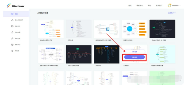 步骤1、在浏览器中打开MindNow思维导图,在“从模板中新建”选择一个需要的模板,点击“立即使用”按钮。
