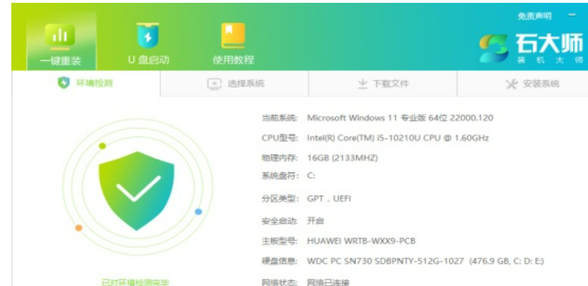 2、石大师一键重装系统