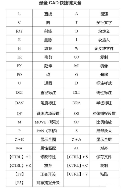 以上便是关于新版cad快捷键命令大全一览表的介绍,如果想要快速提高自己的cad软件的操作的话,掌握一定的快捷键操作是必要的,大家有需要的话可以收藏并学习了解。