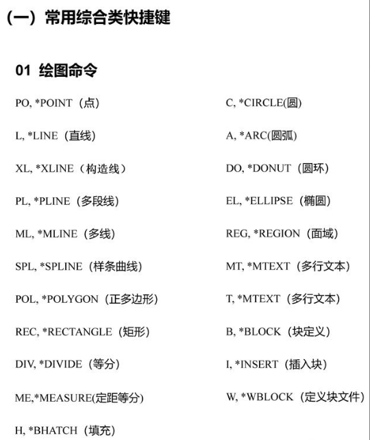综合类cad快捷键汇总表: