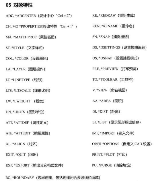 cad常用命令大全一览表: