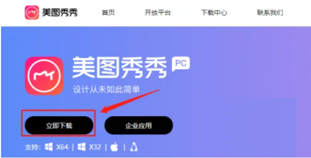 2、打开美图秀秀官网,点击立即下载。