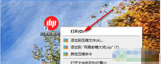 1、网易邮箱大师电脑版发邮件步骤,首先找到电脑桌面上的网易邮箱大师软件,右键单击选择“打开”选项。