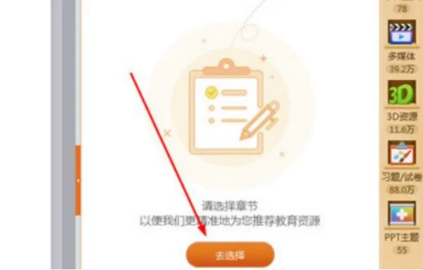 2、接着点击“去选择”选项进行课件章节的选择。