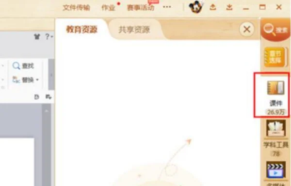 1、先需要先进入并登录到软件的主页面,在右边的栏目中选择“课件”功能。