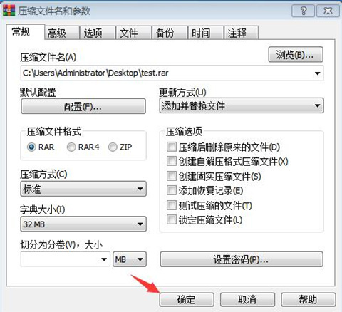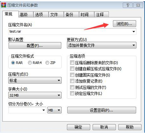 5、输入一个文件名,方便记忆。需要设置好压缩的格式以及方式。