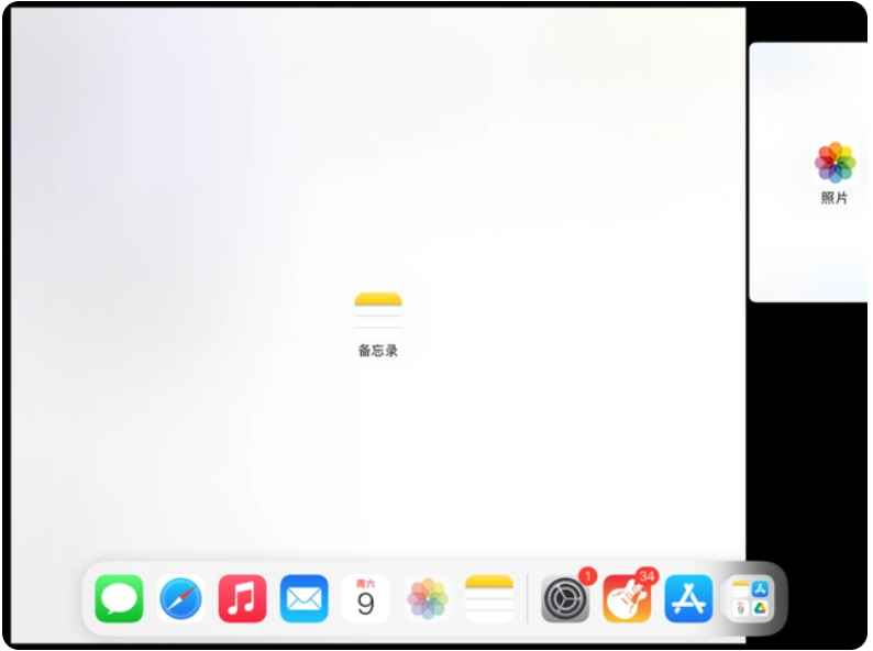 方法1:快速分屏(适用于iPadOS15系统的设备)