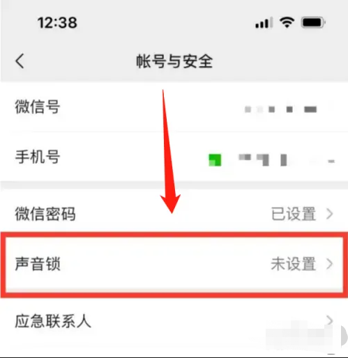 进入微信后,在”账号与安全“中,选择点击进入”声音锁“选项。