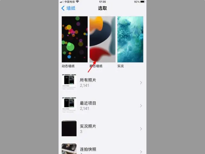 4、在选取界面,以静态墙纸为例,点击【静态墙纸】。