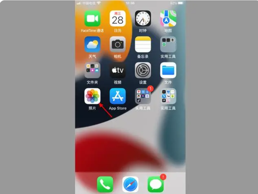 1、在手机桌面,点击【照片】。