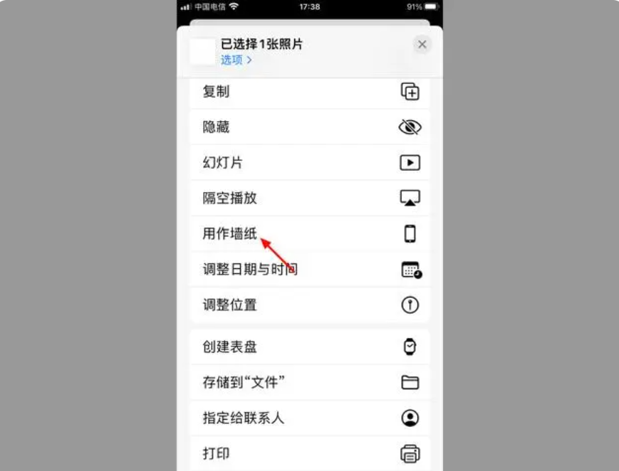4、在分享界面,点击【用作墙纸】。