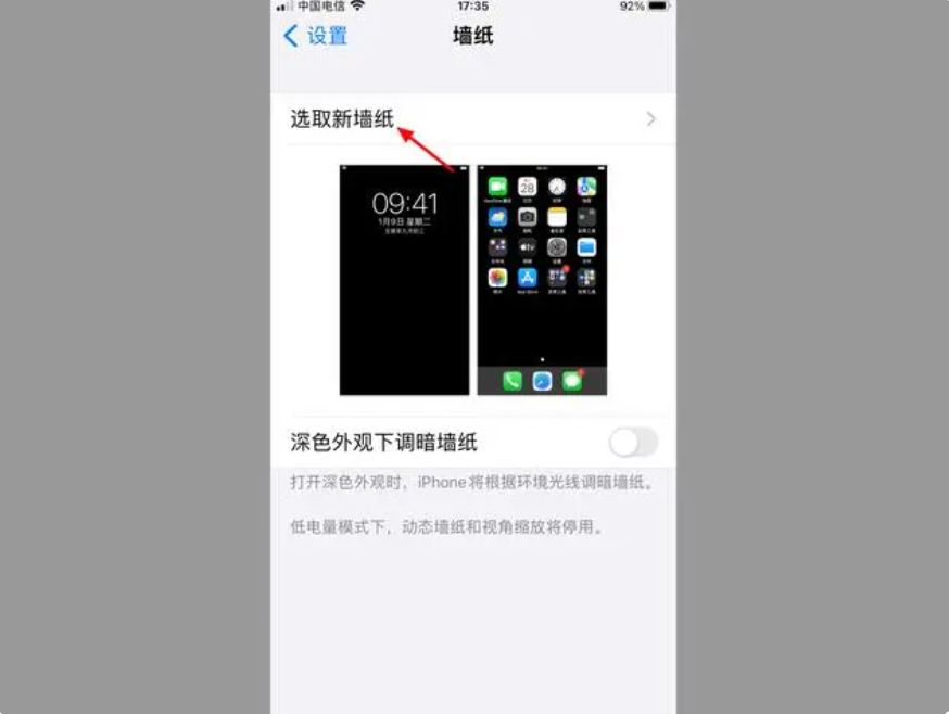 3、在墙纸界面,点击【选取新墙纸】。