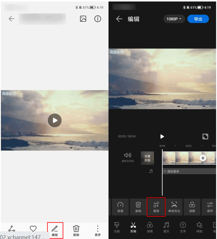 方法二:使用手机图库将视频的水印去除
