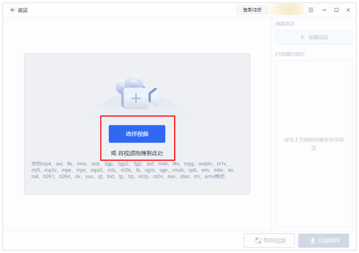 2、将视频文件直接拖拽到软件页面或点击“选择视频”,选择需要进行去水印操作的视频文件。