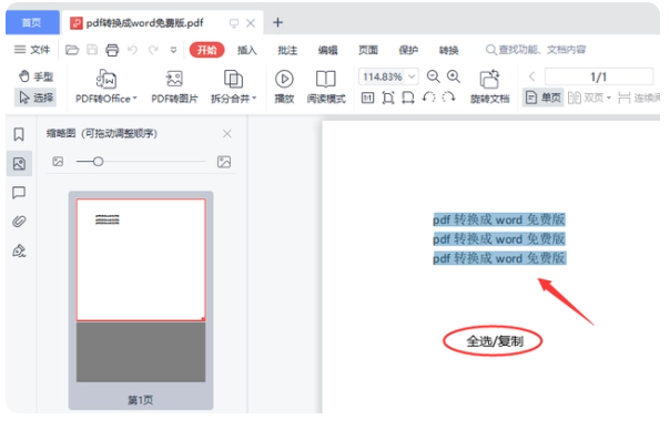 1、pdf怎么转换成word免费呢?我们先将需要转换的PDF文档打开,“Ctrl”+“A”全选文档,点击进行复制。