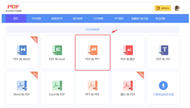 打开浏览器搜索【金山毒霸PDF在线转换器】,进入官网就可以看到有各种转换功能,点击【PDF转PPT】,按照提示上传PDF文件,就可以进行格式转换,转换完成后直接下载到自己的电脑上即可。