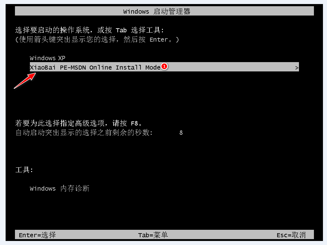 4.重启后进入到启动页面,选择第二个选项进入到“xiaobai PE"系统当中。