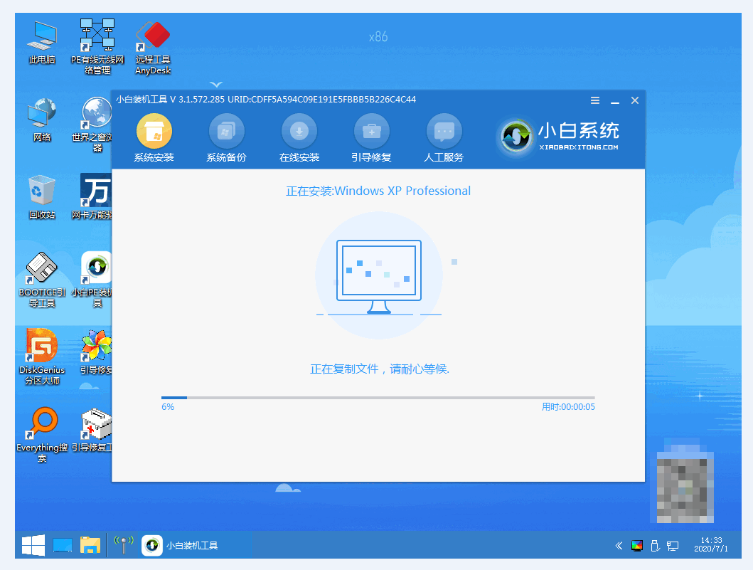 5.进入pe系统后,双击运行小白装机工具,接着小白软件就会自动安装系统了。