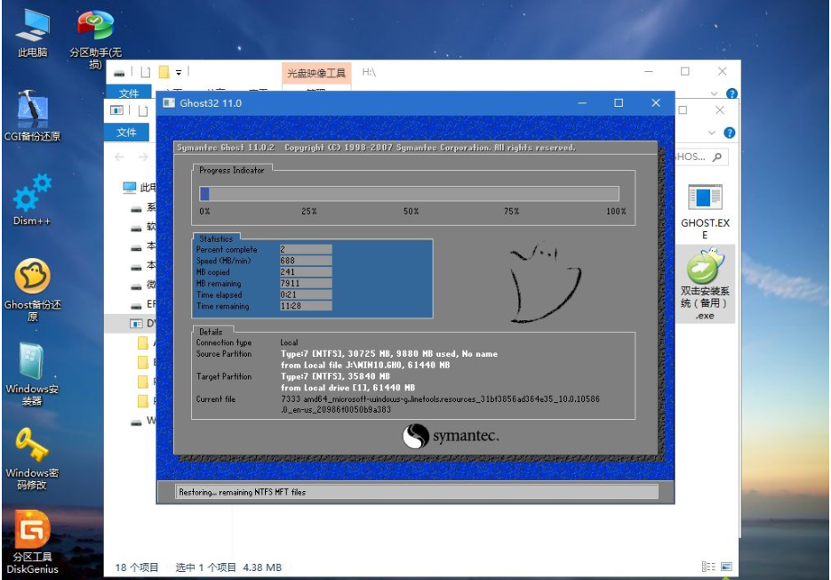 6、等待软件会自动帮助我们重装系统操作,重装完后再次重启电脑。