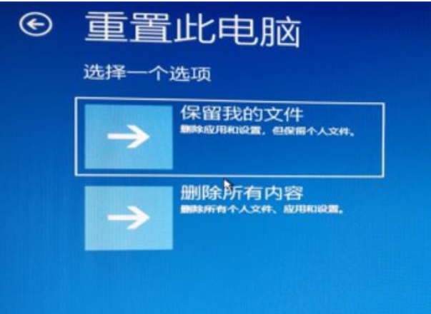 4、如果电脑里面没有重要的资料,小编推荐先选择“删除所有内容”再重置此电脑,如果有一些重要文件就选择第一项“保留我的文件”。
