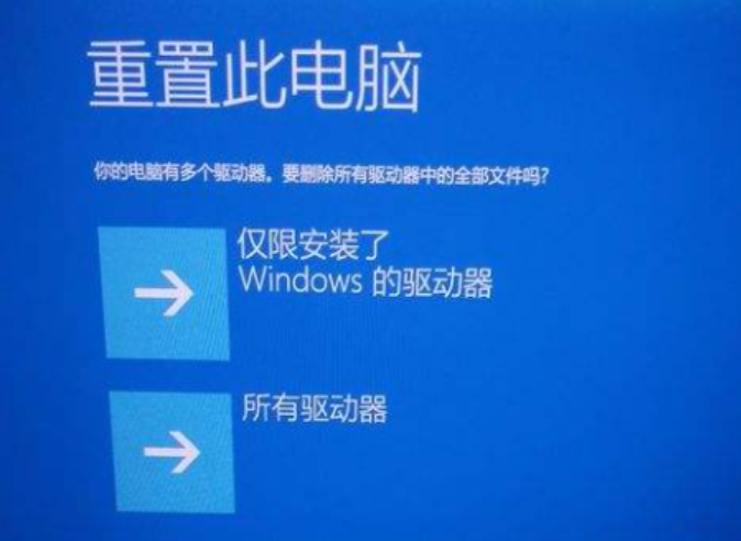 5、在重置此电脑界面下,我们要选择“仅限安装了Windows的驱动器”。