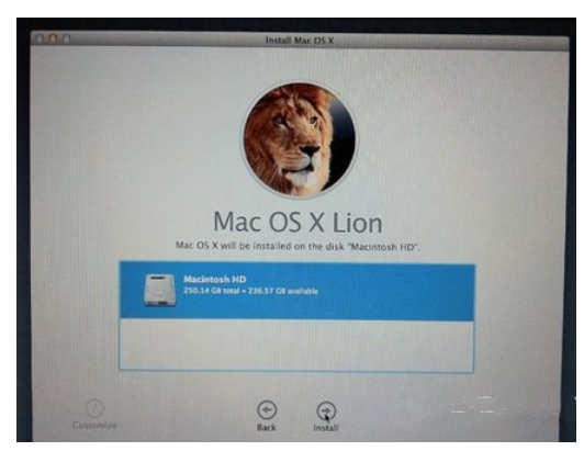 11、然后选择将 Mac OS X Lion 安装的位置。