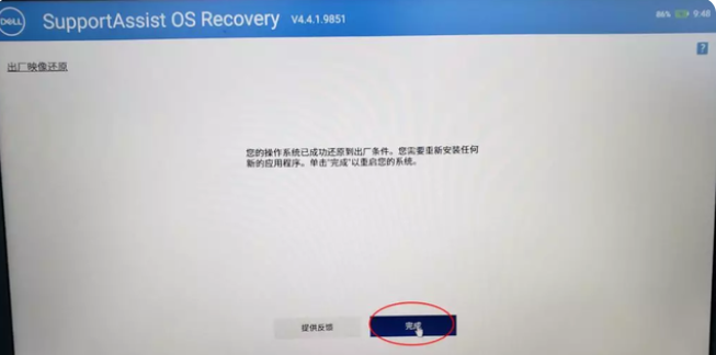 8、提示还原成功后,点击“完成”重启电脑,进行系统的初始设置并进入桌面即可。