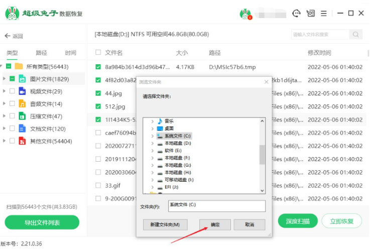 3、勾选恢复的数据,选择磁盘进行存储即可。