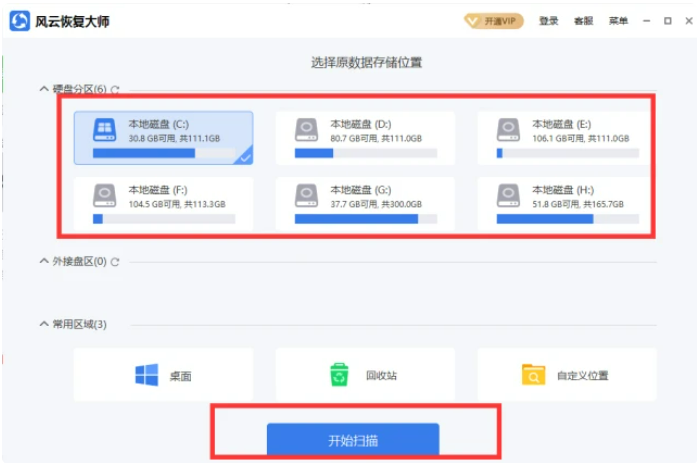风云恢复大师是一款专业恢复软件,不仅可以恢复电脑内部文件,如:文档,视频,音频,图片,数据等;也可以恢复外接设备,如:U盘,SD卡等,功能非常全面。