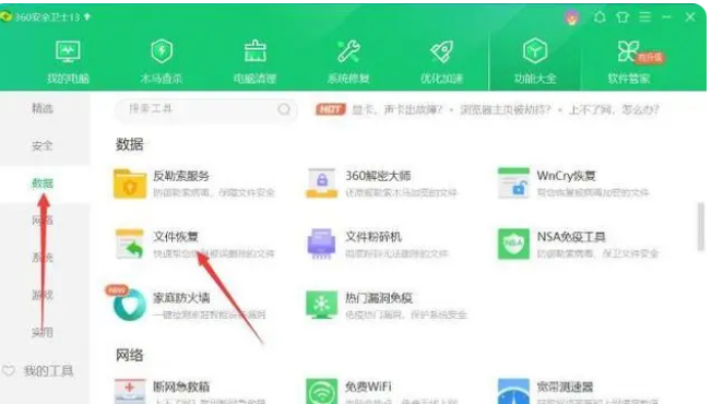 3.360文件恢复器是360安全中心开发的文件恢复工具,目前位于360安全卫士的功能大全里,它可以帮助您快速从硬盘、U盘、SD卡等磁盘设备中恢复被误删除的文件。可以恢复图像文件、音频文件、视频文件、文档文件、网页文件等各种文件。操作简单,也是挺好用的。