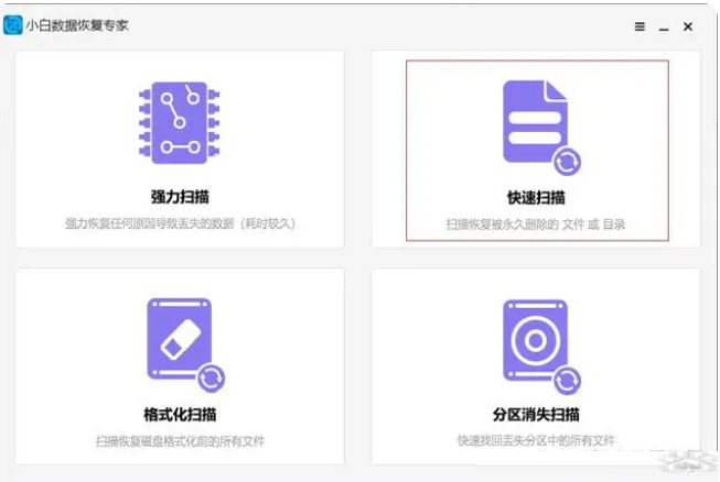 小白数据恢复专家是一款数据恢复软件,可以帮助用户恢复找回不小心删除的数据文件,支持硬盘、U盘、移动硬盘、电脑、内存卡等多种设备,兼容全线Windows系统,操作简单。
