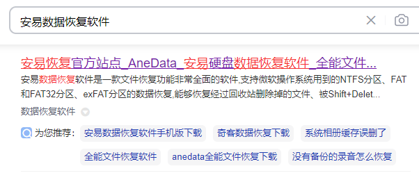 1、我们可以直接在电脑浏览器上查找并搜索“安易数据恢复软件”,找到官方的地址进入。